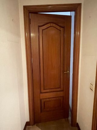 Se venden puertas por reforma de la vivienda. Incluyen manillas doradas. Se venden juntas o por separado. Todas miden 190 de alto y los anchos siguientes: 1) Oscilobatiente color madera por ambos lados - 71 cm 2) Oscilobatiente color madera por un lado y gris por el otro - 71 cm 3) Ciega color blanca por ambos lados - 72 cm 4) Ciega color madera por un lado y blanca por el otro - 72 cm 5) De seis cristales con bisel y 3 de ellos con dibujo tallado pintada de blanco por un lado y gris por el otro - 65 cm
