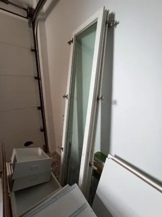 Puerta blanca lacada con cristal opaco nueva