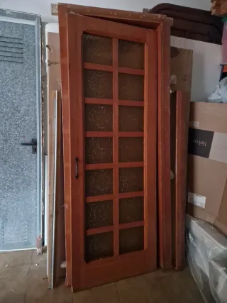 Puertas interiores de madera con marco. - Diseño clásico con panel o cristal según el caso - Incluye manilla y marco. -hoja de 62 o de 72 Se dispone de 5ud 10€/ud