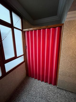 Puerta plegable de color rojo, ideal para dividir espacios. - Diseño acordeón. - Marco de madera. 142cm de ancho por 216cm de alto