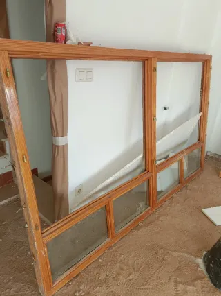 Se vende ventana con marco de madera y aluminio. - Marco de madera. - Marco de aluminio. - Cristal. Medidas de las grandes tengo 4 de 2,12cm de altura de ancho 74 cm Medidas de la pequeña tengo 2 de 115cm de altura y de ancho 74 cm