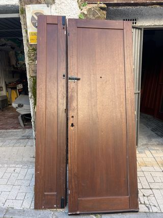 Se venden tres puertas de madera, dos de ellas de menor tamaño. - Medidas de la puerta grande: 1,94 metros de alto por 68 cm de ancho. - Medidas de las dos puertas pequeñas: 1,79 metros de alto por 68 cm de ancho.