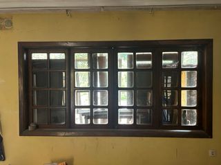 Ventanal grande con marco de madera. Ideal para proyectos de construcción o renovación. Medidas 250ancho x 150alto - Marco de madera. - Múltiples paneles de vidrio.