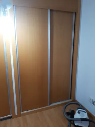 Puertas para armario empotrado. - Acabado en madera color haya con perfiles metálicos. Medidas: ancho 75cm x alto 221cm, 4 unidades. Ancho 45cm x alto 200cm, 2 unidades. Precio tamaño grande 25€/unidad, pequeñas 20€/unidad.
