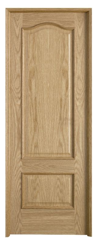 Puertas de interior abatibles ciegas estructura maciza acabado barnizado serie Line Plus Roma Roble hay 2 unidades, una con apertura derecha y otra izquierda. Puertas ciegas de roble con diseño clásico. - Acabado en madera de roble. - Dos paneles decorativos. - Diseño de arco provenzal en la parte superior. Solo tienen las hojas, sin marco, pernios, ni herrajes. Precio por unidad.