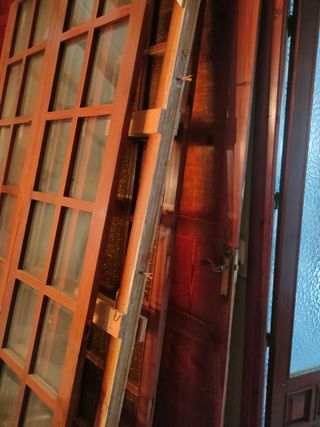 Se venden diversas puertas viejas de varias medidas, entre ellas hay una de entrada de 82 que es madera por fuera y acolchada por el interior, y el resto casi todas son de 72 con y sin cristal. Las hay color blanco (son 3) y las hay madera (6 con cristal y 10 sin). Preguntar precio porque depende de lo que se compre se haria un precio u otro.