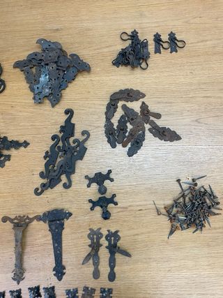 Lote de bisagras, tiradores, embellecedores, clavos, para puertas antiguas, cajones, armarios, alacena, cajoneras, buffets.... muebles para restaurar. (# antic, vintage, retro, rural, rustico, viejo, restauración, ferreteria, embellecedor, arrelgar, ferro, hierro, negro, clavo, clau, madera, fusta, taula, armari, calaixera, artesano, vell, castiza, ventana, forja, )