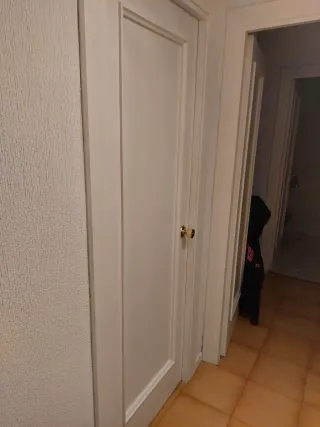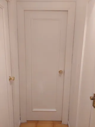 Se venden puertas interiores de madera maciza de 72cm de ancho. Son robustas y de calidad. - Diseño clásico con paneles. - Acabado en blanco. - Incluye tiradores prácticamente nuevos, montados no hace mucho tiempo. Precio: 30€ por puerta (40€ la acristalada) Si te las llevas todas (las 6) te las dejo en 120€ (20€ por puerta) Tres puertas de apertura izquierda sólidas Una puerta de apertura izquierda acristalada Dos puertas de apertura derecha sólidas