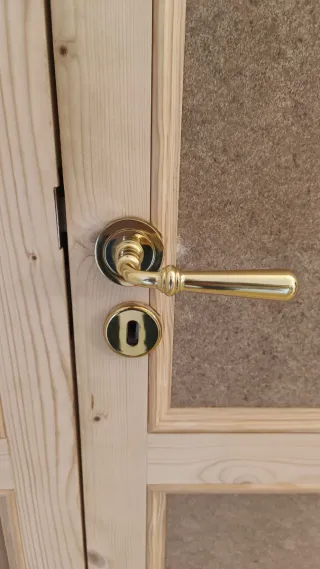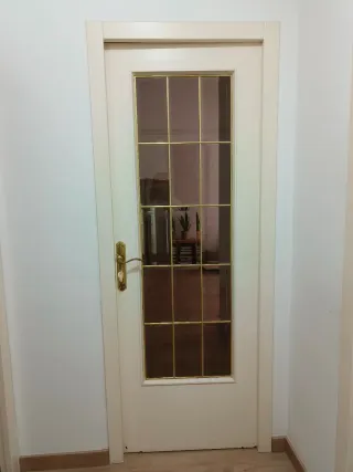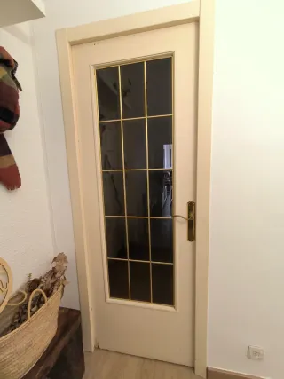 Puerta de interior con acabado en madera. 60€ cada una 72x203 82x203 la de cristal - Diseño clásico y elegante. - Tirador metálico dorado.