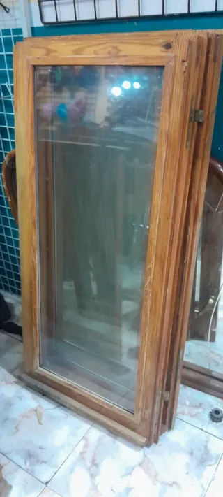 Ventana de madera con doble vidrio. - Marco de madera. - Doble panel de vidrio. - Sin marcó. Son 2 pares PRECIO CHARLABLE CLOT