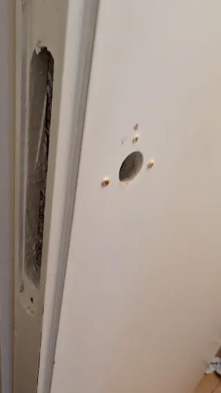 Incluye la puerta de madera blanca con tirador, el casoneto de metal y las tapetas blancas laterales y superior. Lista para instalar. Medida de la puerta: Altura 203cm Ancho 62,5cm Grosor 3,5cm. Como nuevo, excepto una raspadura de 2x2 cm. Puedo añadir la lana de roca y los perfiles de aluminio para pladur por 30€
