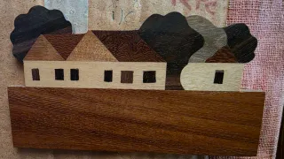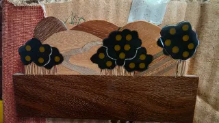 Adhesivos decorativos para dar un toque personal a tus muebles. - Ideales para puertas, cajones, armarios y más. - Diseño de paisaje con árboles. - Base de madera oscura.