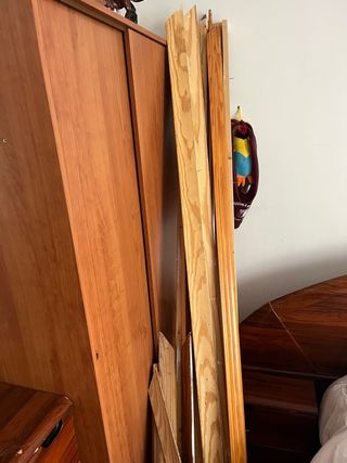 Conjunto de jambas o molduras estrechas, son 3 piezas de madera maciza con un diseño coasic, acanalado.,valido para puerta, marco, enmarcado... - Material: Madera maciza. - Diseño: Acanalado. Medias: largo 227, ancho 7, periles 1 y 0,5cm aprox.