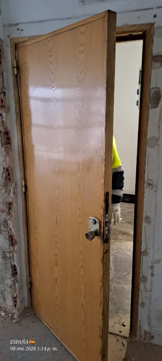 Preciosa puerta blindada acorazada de madera maciza en perfecto estado. Con lámina de acero interior por toda la puerta. Con tres puntos de cierre. Ideal para mejorar la seguridad de tu hogar. Medidas: 201,5 x 81,5 x 5,6 - Acabado en madera de roble. - Incluye cerradura de seguridad. - Pomo de puerta dorado. - Recoger en Burgos. Precio de compra nuevo es superior a 2.000 €. Abstenerse subasteros y mareantes. Lo que ves en las fotos y chapa metálica para poner en el Marco con los agujeros de la cerradura, no hay Marco ni jambas ya que esas se tiene que adaptar a tu casa.