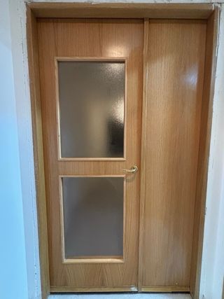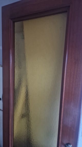 Se venden 7 puertas de madera. - Puertas de interior. - Acabado en madera clara. - Medidas: 72.5cm ancho x 203cm alto - Una de ellas es con cristal doble de salon (medida 72.5cm y una fija de 43.5cm) Precio: 70€ por puerta