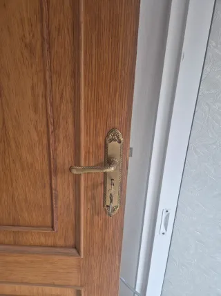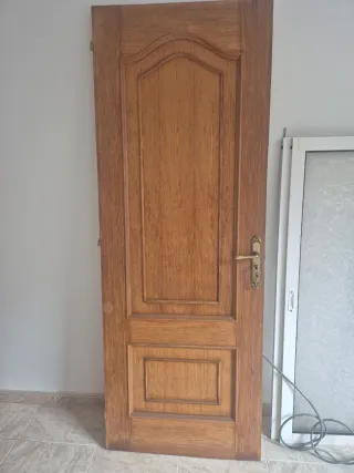 Puerta de madera maciza con un diseño clásico y elegante. - Material: Madera maciza. - Acabado: Barnizado. - con tiradores De 62 cm (2 abren izqda). De 72 cm (1 abre a izqda y otra a drcha). La de cristal es de 72 cm y abre a izqda. 2:10 de alto Precio 10 euros cada una. Están en Santander.