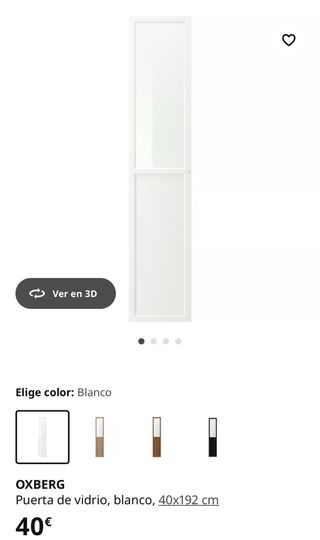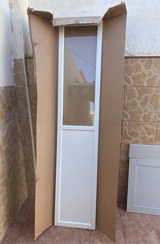 Nueva sin uso por equivocación. Puerta de cristal y madera blanca modelo Oxberg de Ikea. Ideal para armarios. - Medidas: 40x192 cm. - Color: Blanco. - Diseño mitad cristal, mitad panel.