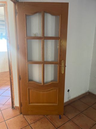 Puertas de madera maciza, en perfecto estado. 4 normales y 2 con cristales. -Puerta de una sola hoja. -Madera de alta calidad. -Acabado brillante. Precio por unidad.