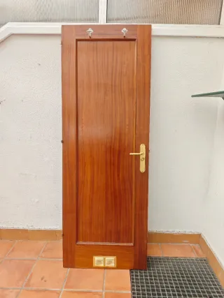 Descripción Conjunto de cinco puertas de interior fabricadas en madera maciza, de excelentecalidad. m - 2 puertas solo de madera de 72 cm de ancho y 202 cm de alto: 1 de apertura a la derecha y 1 a la izquierda. - 2 puertas solo de madera, de 62 cm de ancho y 190 de alto: 1 con apertura a la derecha y 1 a la izquierda. - 1 puerta de 62 cm de ancho y 202 de alto con apertura a la derecha. Las puertas están en muy buen estado. Algunos marcos están un poco rayados. Precio: 50 € cada puerta. Si se quieren varias se podría ajustar el precio.