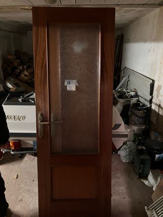 Puerta de madera con un panel de cristal. Medidas 190 cm x 69.5cm60 - Marco de madera oscura. - Panel de cristal translúcido.