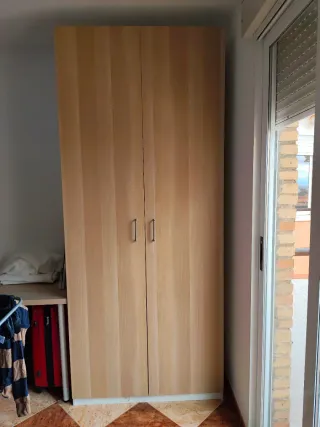 Puerta de armario de madera de Ikea. Diseño sencillo y funcional. - Acabado en madera clara. - Tiradores metálicos.