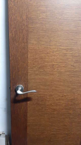 Se venden dos puertas de madera color sapeli en perfecto estado, cada una con su manilla. Las medidas son: 62.5cm de ancho x 2.03m de alto. La apertura es para dentro a la derecha, visto desde fuera. El precio es para las dos.