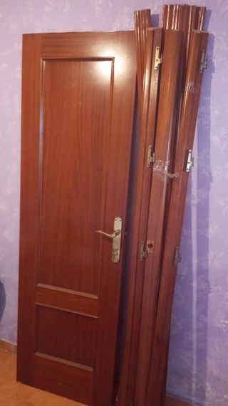Se venden dos puertas de paso de madera maciza de color sapelli. 70 cms de ancho. Incluyen jambas y marcó de madera también (no dm). Se encuentran en perfecto estado, sin arañazos ni roces. Sólo un año instaladas. Se cambiaron por reforma al comprar vivienda, hace unos meses. Apertura izquierda. - Color: Sapelli - Material: Madera maciza