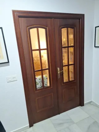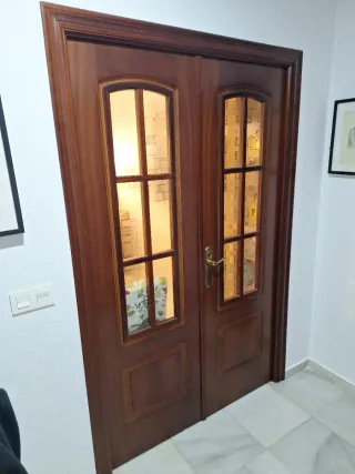 Puerta doble madera con cristal