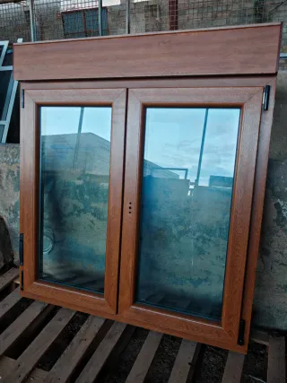 2 ventanas de PVC nuevas a estrenar, de la marca alemana kommerling, apertura oscilobatiente con cristal doble isolar glass 4/16/4. Lleva guías para persiana opcionales La cara interior es blanca y la exterior imitación madera nogal Medidas: 191,5 x 104 x 7,5 2 unidades PRECIO POR UNIDAD SOLO RESERVO CON SEÑAL DISPONIBLES MÁS VENTANAS, BALCONERAS, VENTANAL, PUERTAS... EN MI PERFIL 🚚 POSIBILIDAD DE TRANSPORTE NO INCLUIDO EN EL PRECIO