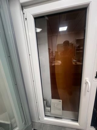 Puerta de PVC de la marca REHAU. - Material: PVC. - Marca: REHAU. - COLOR BLANCO POR FUERA Y POR DENTRO MADERA -Sin usar como nueva - A FALTA DE TAPAJUNTAS