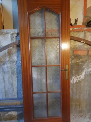 Puerta de interior de madera con detalles de cristal. medida: 70 cm ancho x 201 alto - Diseño clásico con paneles. - Marco de madera oscura. - Tirador metálico dorado. 40 euros cada puerta.
