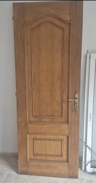 Puerta de madera en perfecto estado. Ideal para interior. 203*60 - Fabricada en madera maciza. - Diseño clásico y elegante. - Incluye manilla.