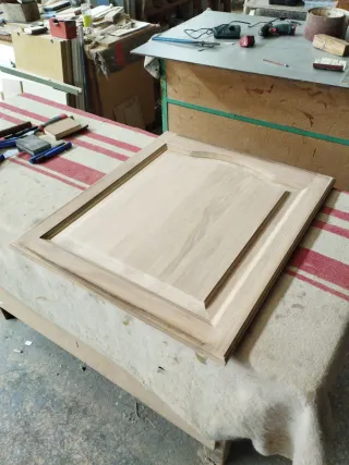 Puertas de estilo provenzal con plafón, fabricadas en madera de roble. Con unas medidas de 70x60x2,2 cm, listas para barnizar - Material: Roble - Diseño: Provenzal con plafón