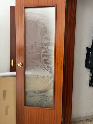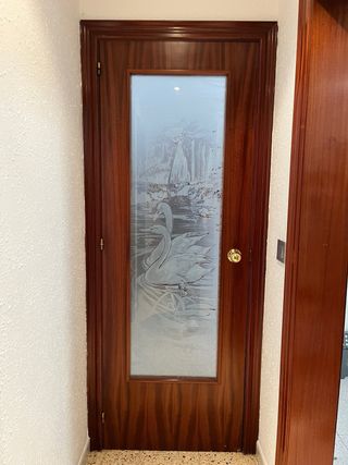 Pack de cinco puertas de madera de sapeli. - Material: Madera de sapeli. - Cantidad: 5 unidades. 3 lisas y 2 con cristal decorativo Negociable 2m de alto 71cm de ancho