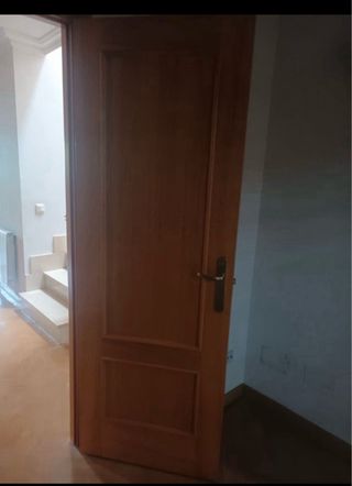 Puerta maciza de madera, ideal para baño o cualquier estancia. Con galces, marcos y manivela - Material: Madera maciza. - Acabado: Natural. 62 cm por 203 cm 2 unidades a 50€ las 2 1 a izquierda 1 a derecha