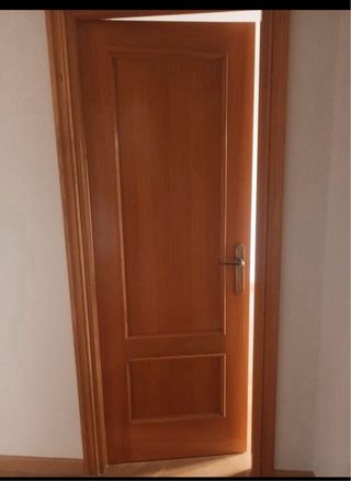 Vendo 5 puertas de madera chapadas, semi nuevas, modelo clásico como se ve en las fotos. Se entregan completas con: ✅ Bisagras ✅ Manivelas ✅ Contramarcos ✅ Tapajuntas 📌 Todas están numeradas para saber dónde van y hacia dónde abren, tal como aparece indicado en la foto adjunta. 📏 Medidas (altura 204 cm): • 4 puertas de 72,5 cm de ancho • 1 puerta de 62,5 cm de ancho (Aperturas derecha/izquierda según numeración de la foto) 💰 Precio: 250€ las 5 puertas (lote completo) - 70€ cada puerta por individual (completa)