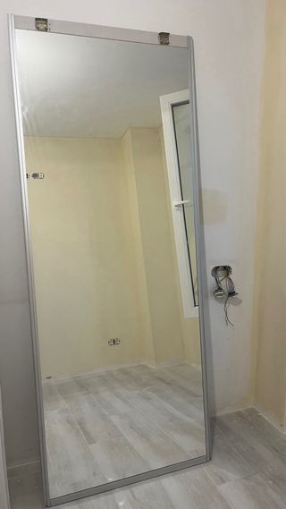 Puerta corredera de madera con perfileria de alumio y espejo. Medidas: 210x84 - Marco de aluminio. - Diseño moderno.