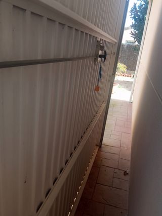 Se venden 2 puerta de cochera o garaje en perfecto estado. Son de hierro, muy resistentes. No necesitan marco, listas para instalar. Medidas 250 x 250 cm. Con cerradura y llave. Dos hojas grandes y una pequeña de paso. Si te llevas las 2, 600€, una 350€. Garage, parking, almacén