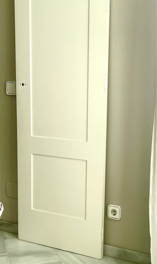 Puerta de paso de color blanco crema. - Diseño de dos paneles. - Medidas standard para baño (72x203) - Sin marco ni visagras, ni manilla ni tapajuntas