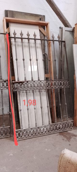 Reja de hierro forjado de gran tamaño, ideal para exteriores. 2,03 alto aparte adorno y 1,20ancho - Diseño con barrotes verticales. - Adorno superior con detalles ornamentales. - Estructura robusta. 2und 100€