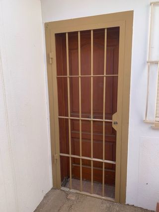 Reja de seguridad metálica para puerta. - Color: marton claro - Diseño con barrotes verticales y horizontales. Medidas 203 x 82