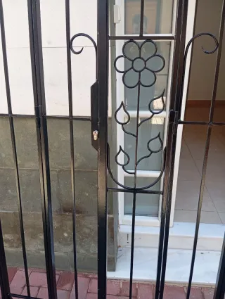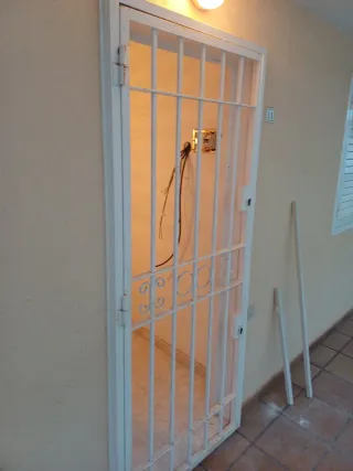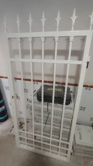 Puerta de reja en color blanco. - Diseño con barrotes verticales y adornos. - Marco resistente. 603127523 WhatsApp 602067665 Llamadas