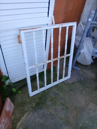 Conjunto de rejas de hierro, ideales para ventanas o balcones. Su diseño aporta seguridad y un toque decorativo. - Fabricadas en hierro. - Color blanco con. - Diseño con barras verticales y curvas. Tengo dos, a 25€ cada una