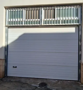 Se vende puerta de garaje nueva, lista para instalar. Incluye motor para apertura automática y rejas de seguridad. - Puerta de garaje seccional. - Motorización incluida. - Rejas de protección. Medidas ancho 3,65 Alto 3,33 con las rejas incluidas en la medida del Alto