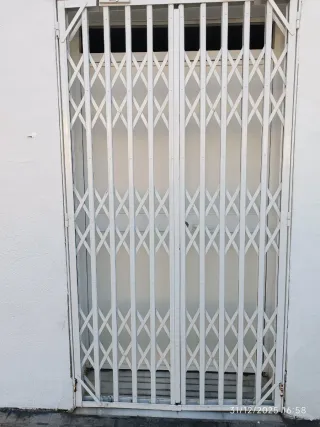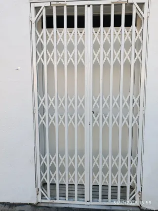 Reja de seguridad metálica para puerta. - Diseño extensible. - Color blanco.medidas de 104 x 222 de dos hojas y dos candados
