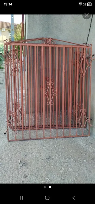 Cerramiento metálico con puerta. - Estructura de reja. - Incluye puerta. Se entregará en tres piezas habrá que soldarla en destino. Solo un punto de soldadura. Solo el material me costo 350€. Medidas: 219 cm x 210 cm Cerrana un hueco de 230cm (hay que contar las pletinas)