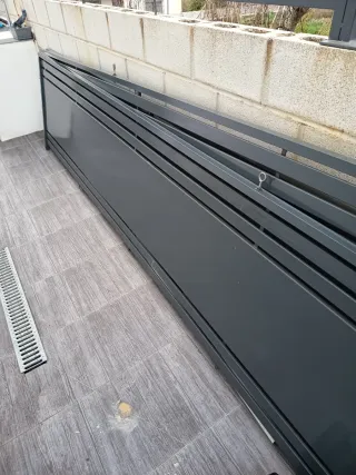 Reja de hierro de color oscuro, para exteriores. Medidas aproximadas 3.80mx88 cm. Son tres rejas - Material: Hierro. - Color: Gris antracita.