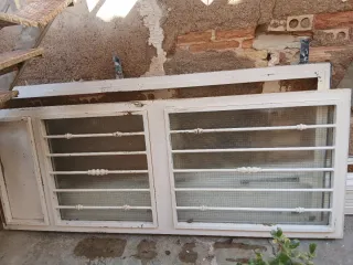 Se vende conjunto de ventanas y rejas. 3 ventanas correderas (6 hojas en total) Medidas de cada hoja: 39 x 107 cm Incluye mosquiteras y rejas (3 rejas, una para cada ventana) 1 ventana grande corredera Medidas de cada hoja: 145 x 46 cm Incluye mosquitera y reja adaptada al tamaño del marco Todas las ventanas son de aluminio resistente, con doble cristal, y diseño moderno y elegante. 📍 Entrega en Granada y alrededores. Se pueden venir a recoger