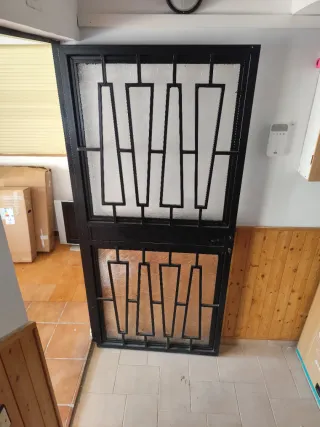 Reja de seguridad para puerta, fabricada en hierro macizo. - Diseño robusto y resistente. - Ideal para protección adicional. - Medidas 2,10 de alto por 2 de ancho completa con cerradura su llave marco….
