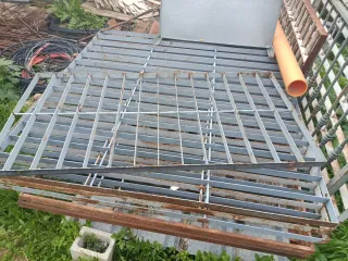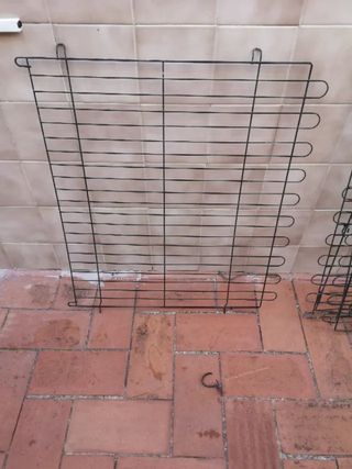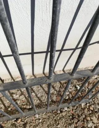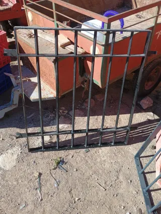 Conjunto de rejas metálicas de gran tamaño, ideales para proyectos de construcción o seguridad. - Estructura robusta de metal. - Diseño de rejilla. - Color gris. - 60 euros las pequeñas .Medidas de 0,76 cm de ancho por 1,54 cm de alto,tengo 19 - 110 euros las medianas .Medidas de 1,50 cm de ancho por 1,54 cm de alto ,tengo 8 --350 la esquinera de 2,10 cm por 2,10 cm de lados por 1, 53 cm de alto